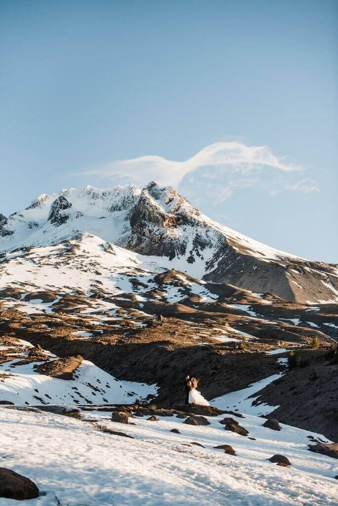 Creating your elopement package in Oregon wouldn’t be complete without considering the state’s mountains and waterfalls as a possibility for your nuptials. Central Oregon, known for its desert landscape and unique elopement locations, also offers a distinct charm. From the incredible snow-capped mountains and cascading falls, these locations offer stunning backdrops of natural beauty that will make your elopement adventure truly unforgettable.