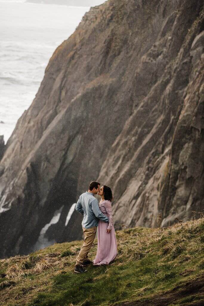 Raissa and Nik flew up from Southern California to have an adventure session near the spot where they’re going to elope on the Oregon Coast in July 2020. Leap Day was the perfect date for this engagement session that spanned weather from hail and rain to a gorgeous sunset (dude, scroll down for that juicy golden light).