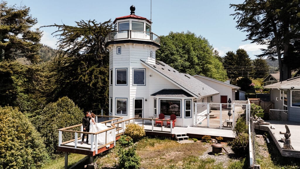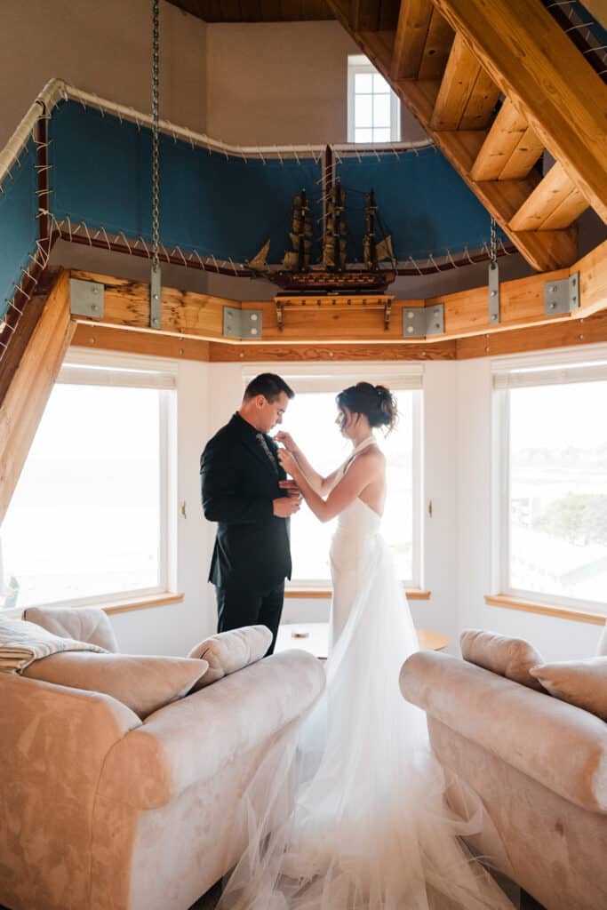 Day One started in the most on-brand way possible for them: at a lighthouse Airbnb. Like, literally a replica lighthouse. Hands down the best getting-ready spot I’ve seen in a while.