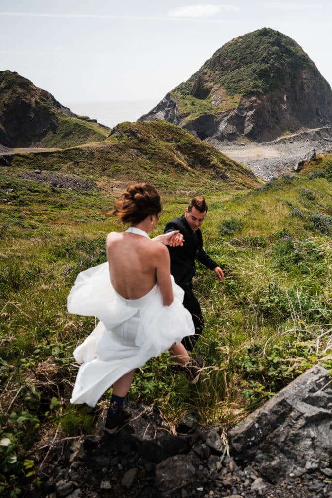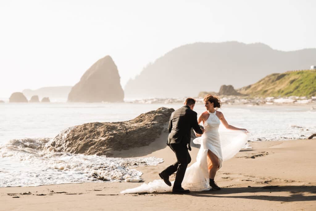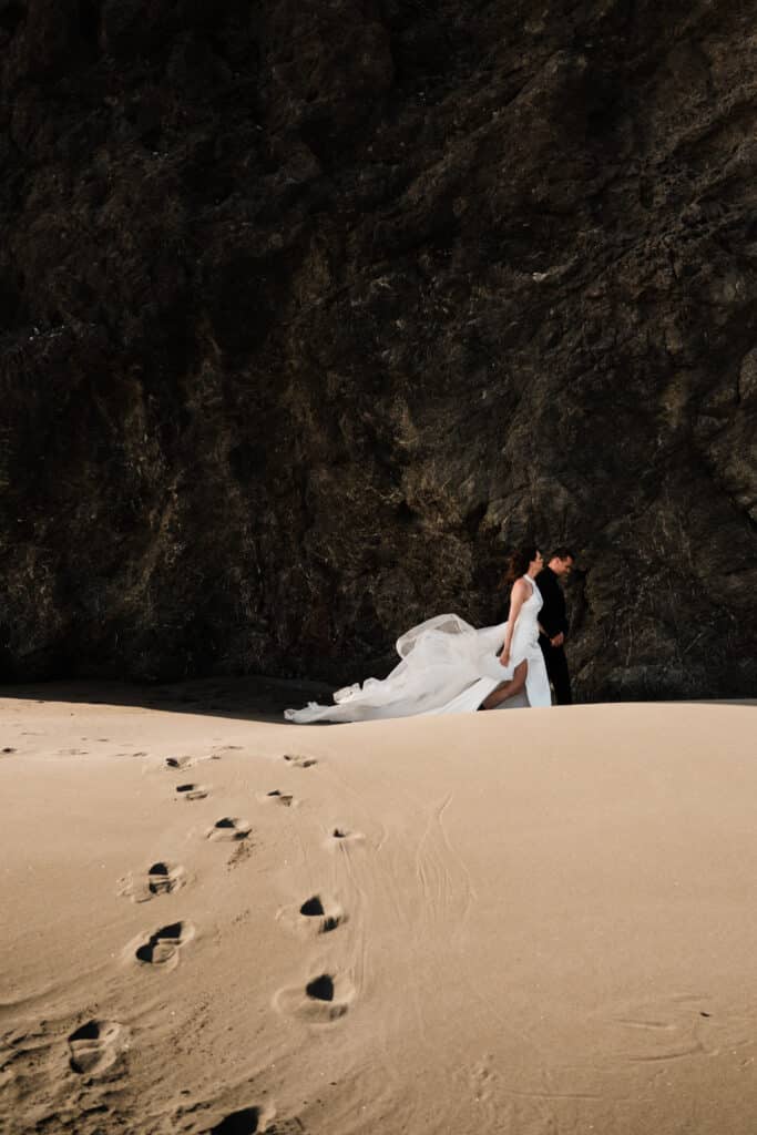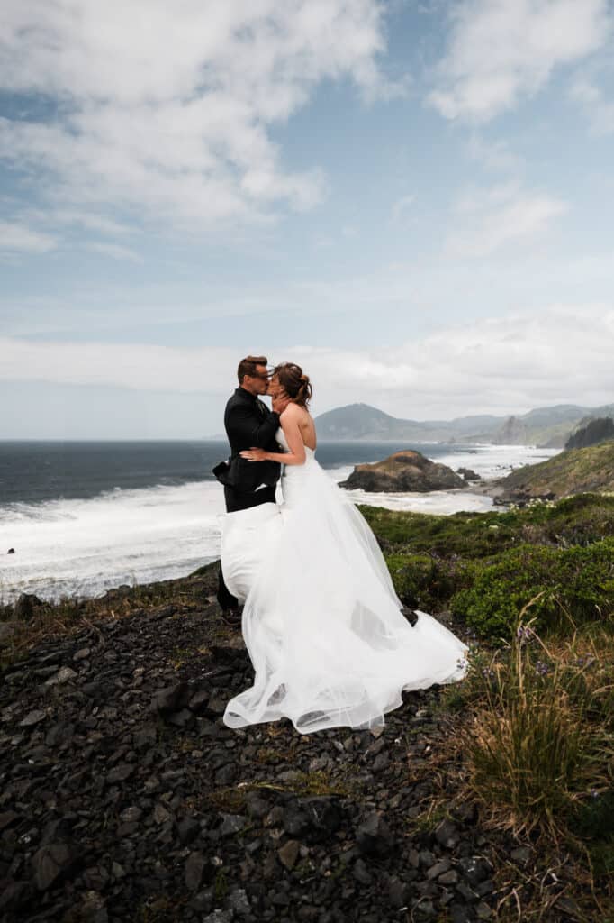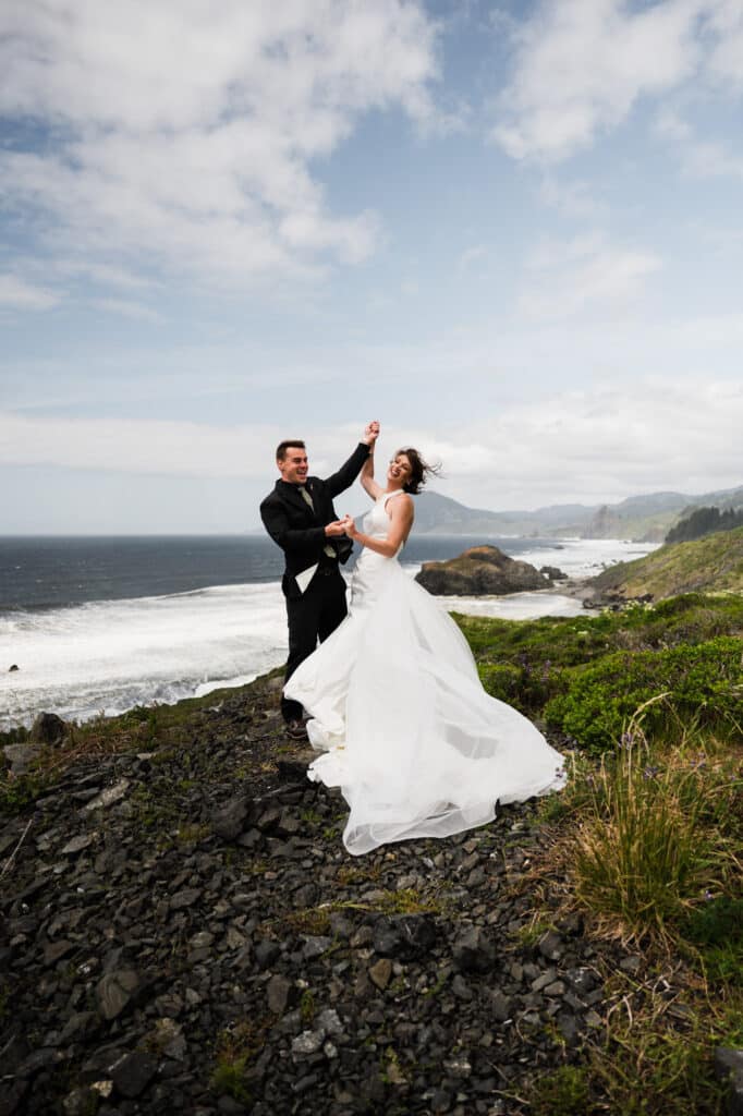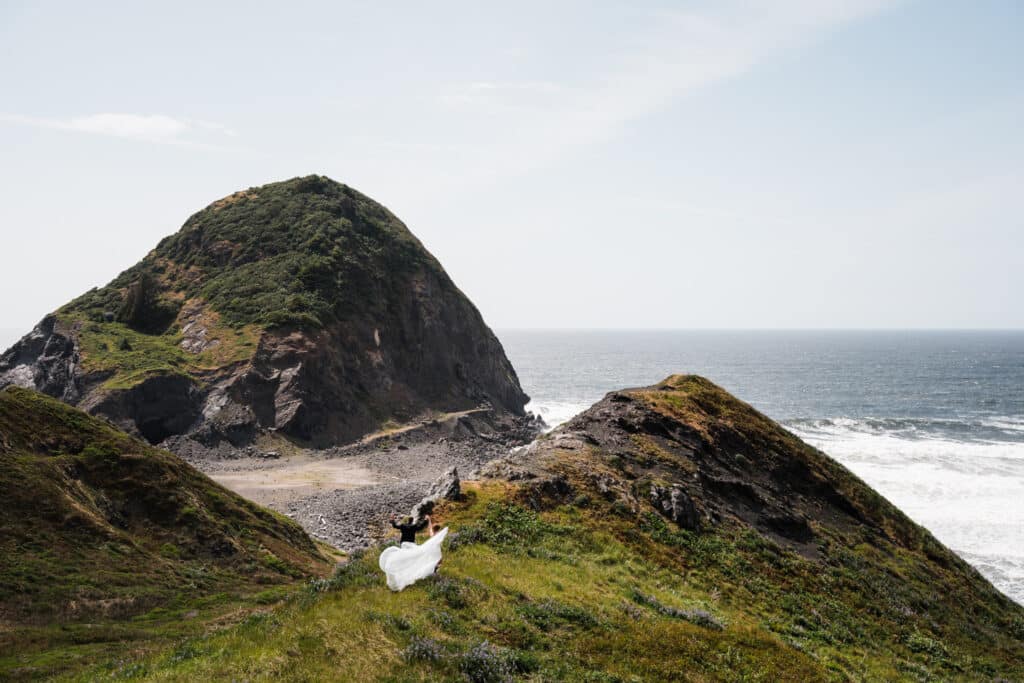 For me, this day creatively had it all. Two awesome people completely present and trusting, down for anything, a dress full of movement (Olivia added a sick train to her form-fitting dress), the best Oregon Coast elopement locations for drama and variety, and the most amazing lighting this side of the Dolomites.