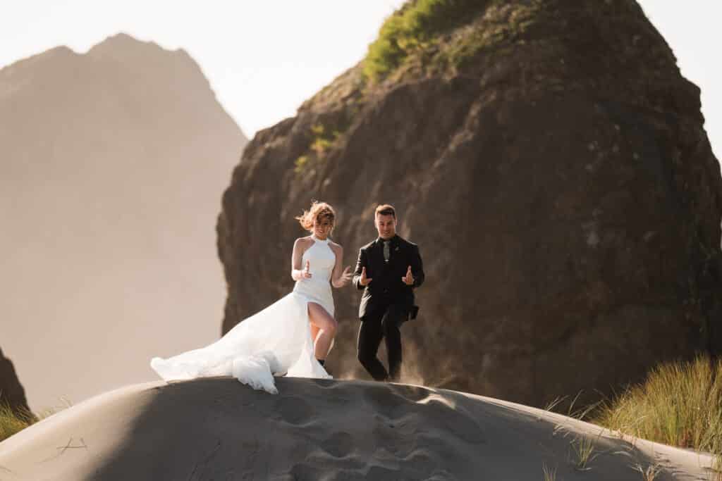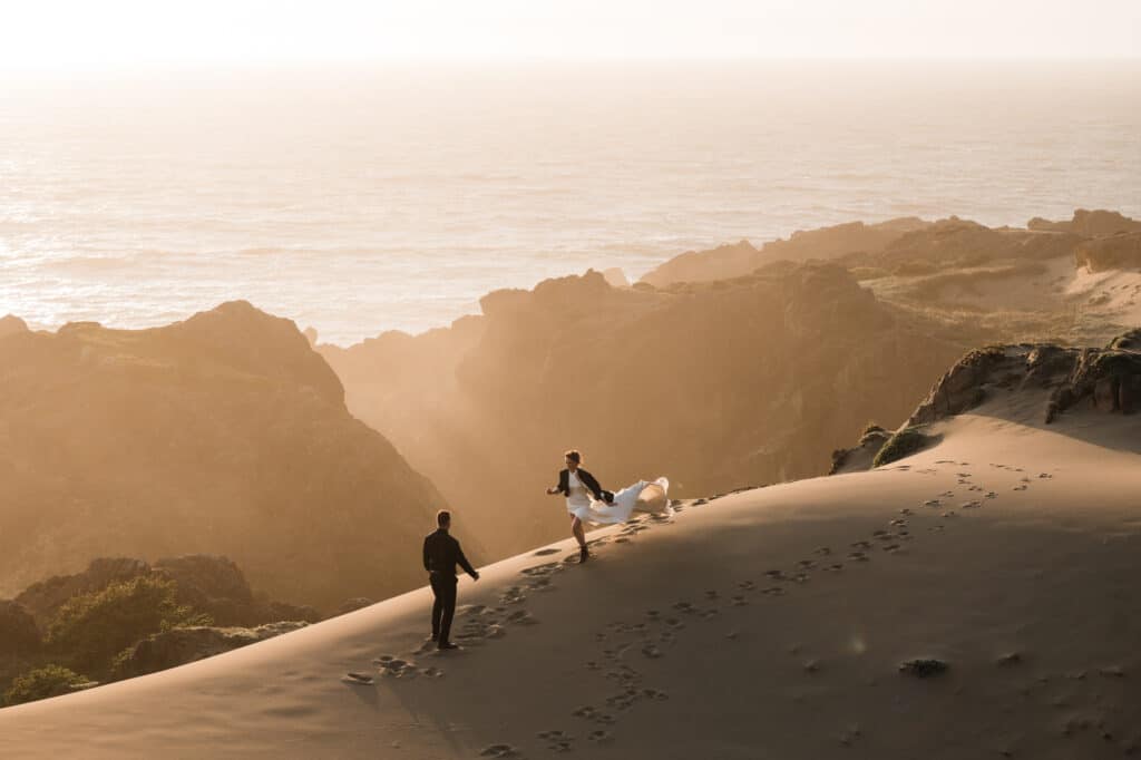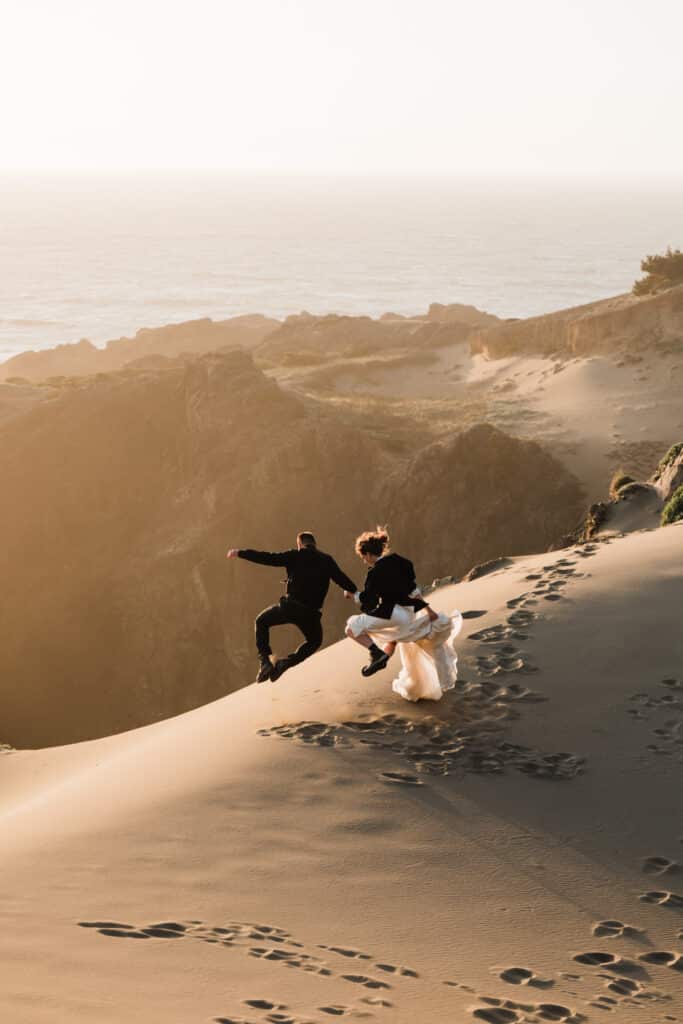Their elopement wasn’t about a performance. It was about presence. It was about goofiness, love, and that perfect balance of knowing when to run down a dune like a maniac and when to pause and take it all in.