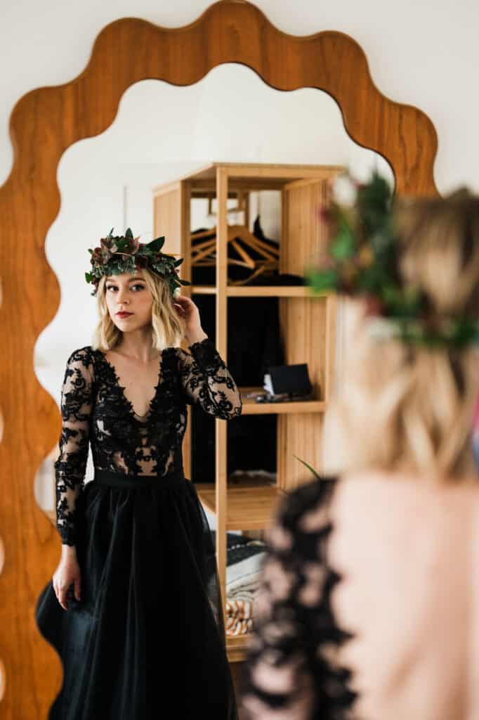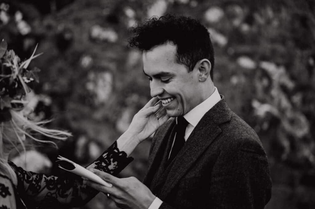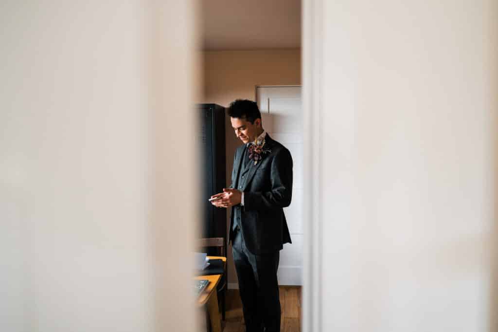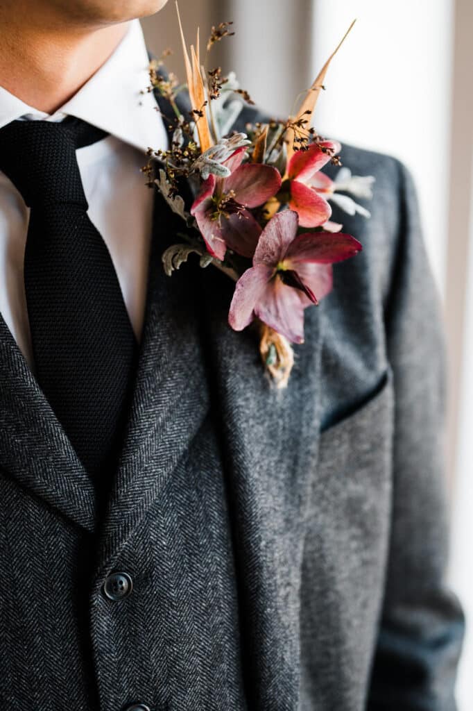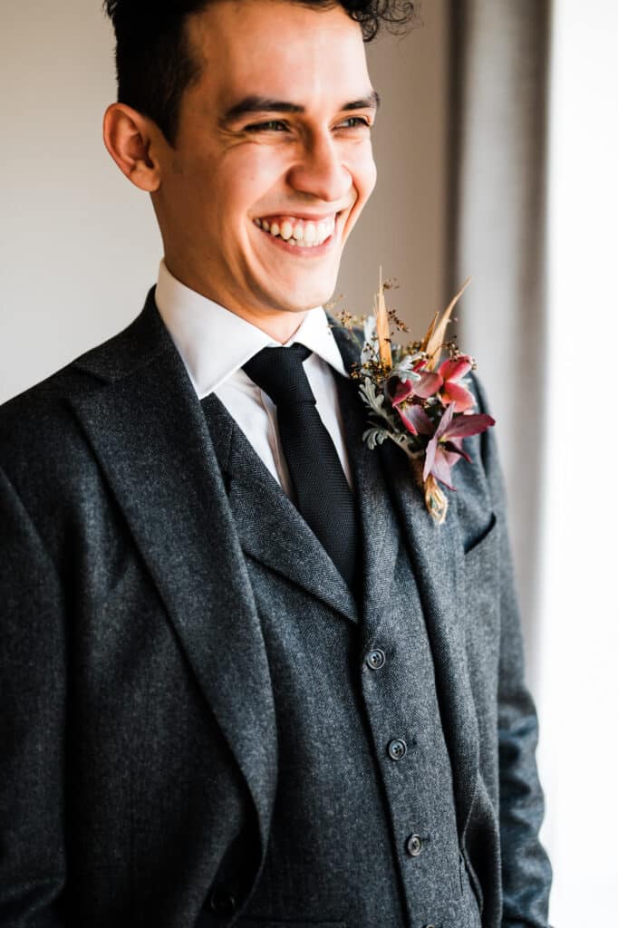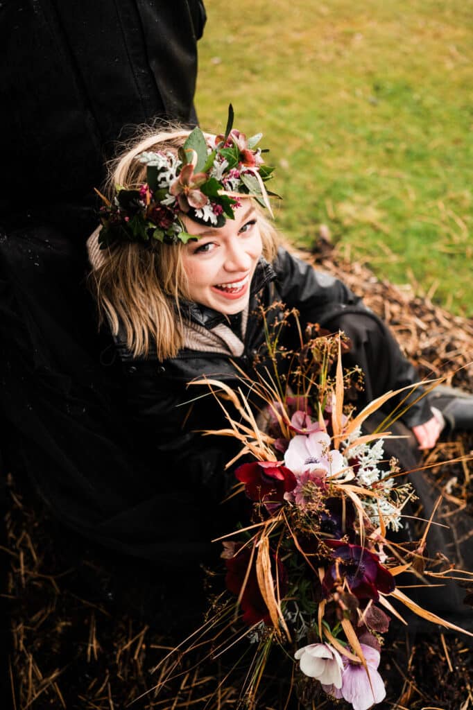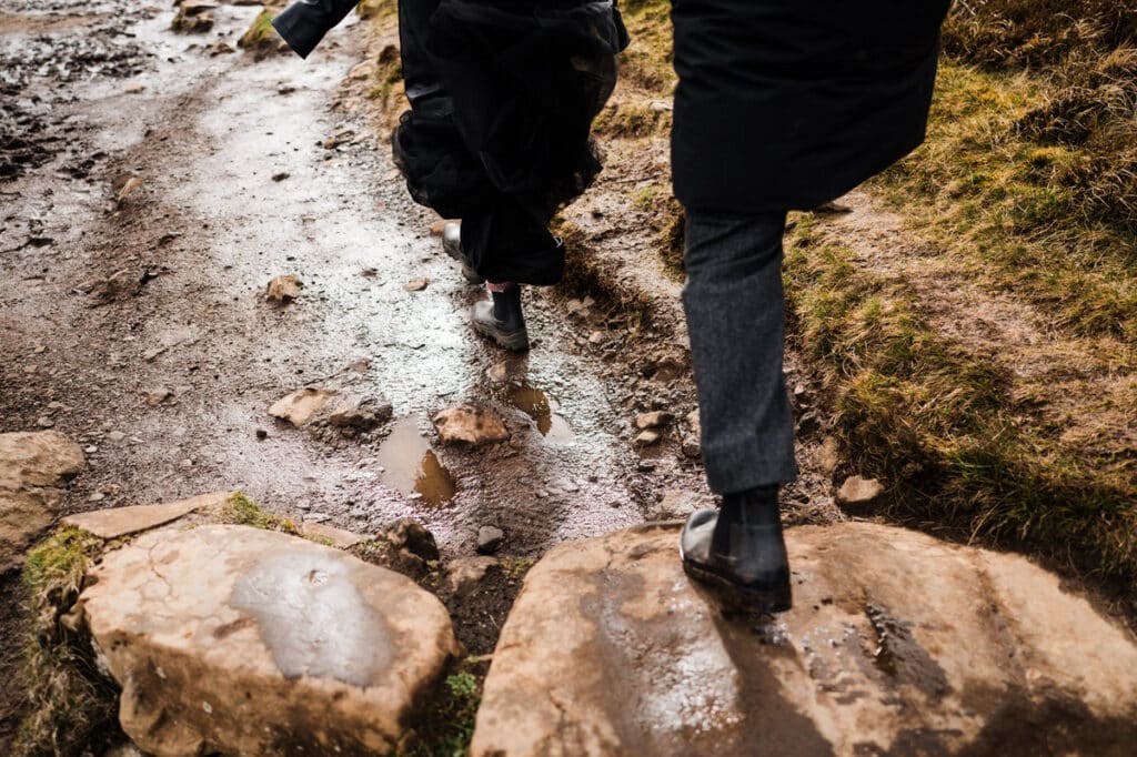 For their elopement, Nina wore a beautiful bodysuit and skirt combo, while Derek donned a dapper charcoal suit. Both sported Chelsea-style Wellington boots to combat the wet conditions we experienced!