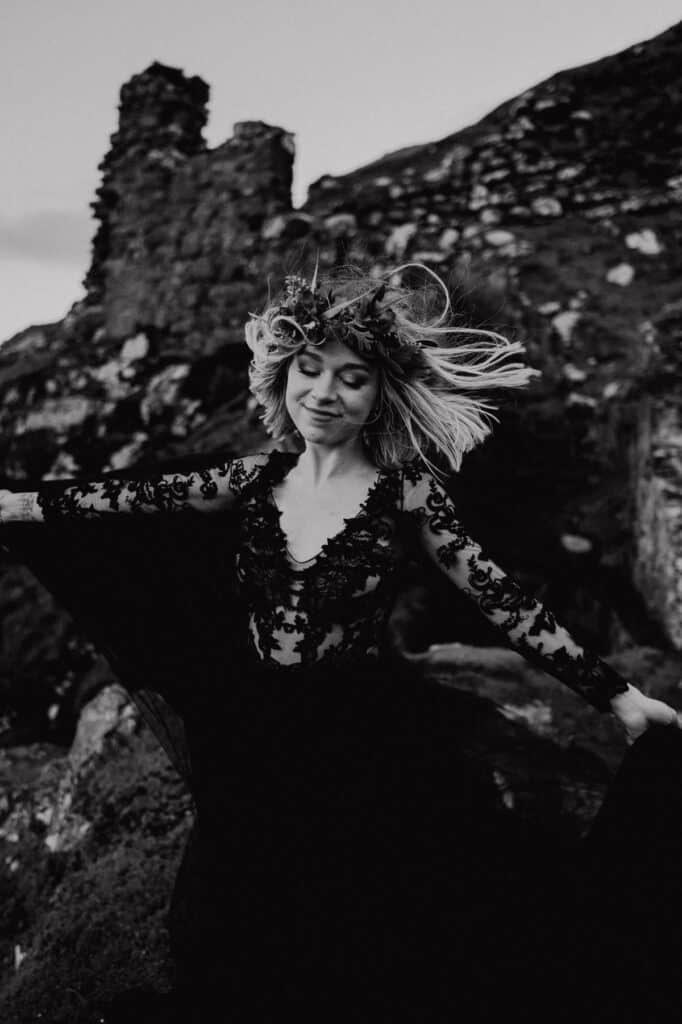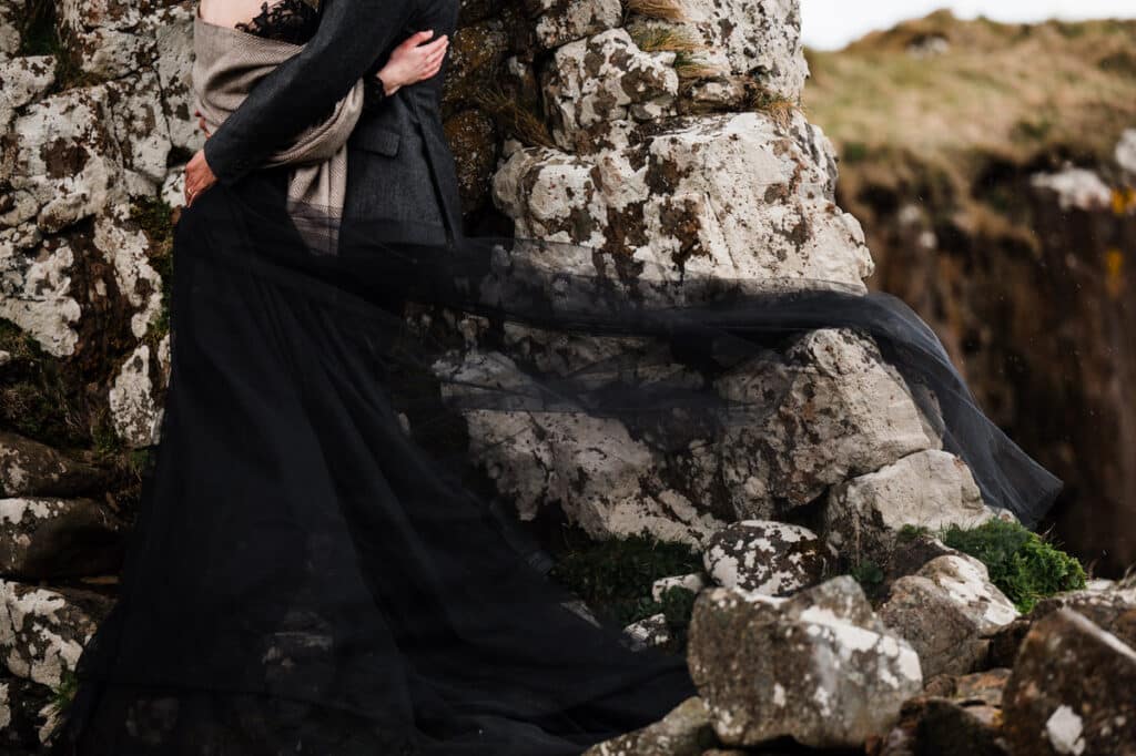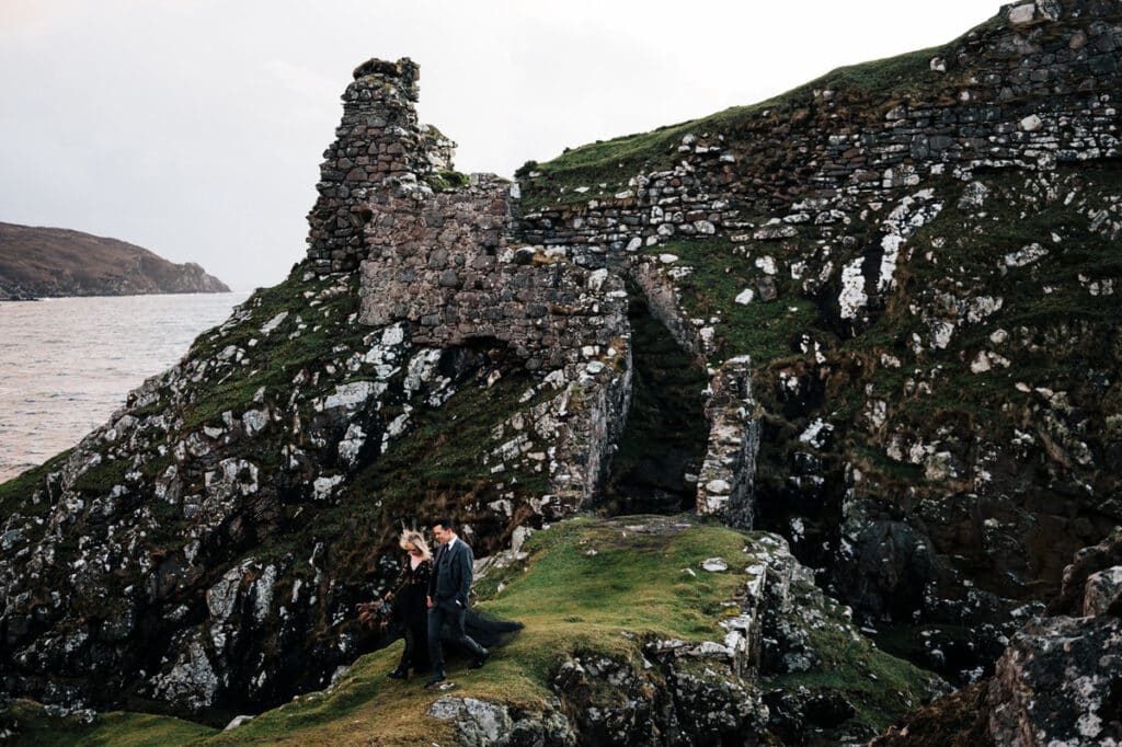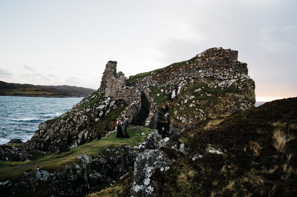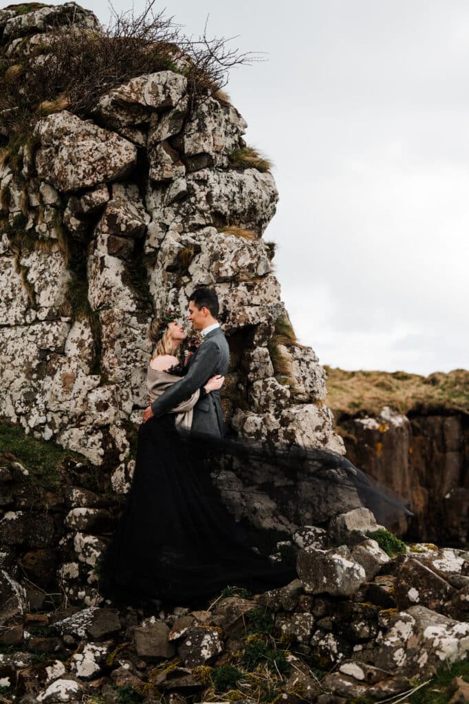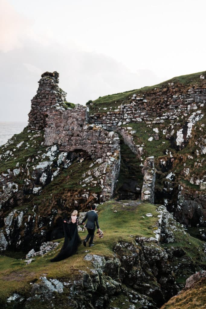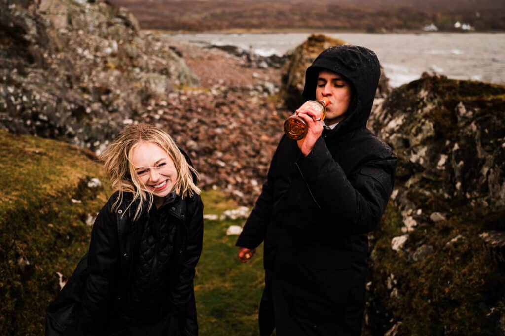 We headed off to multiple locations across Skye, including the Quiraing and some castle ruins, where they had their ceremony and drank from the quaich (a Celtic tradition!). As we dodged squalls, we reveled in where we were and the beauty that storms can bring. Without the storms we face earlier in the day, we wouldn’t have been greeted with such a spectacular sunset! These two jumped over boggy creeks, scrambled up ruins, and embraced in the wind while the sun set at their backs.