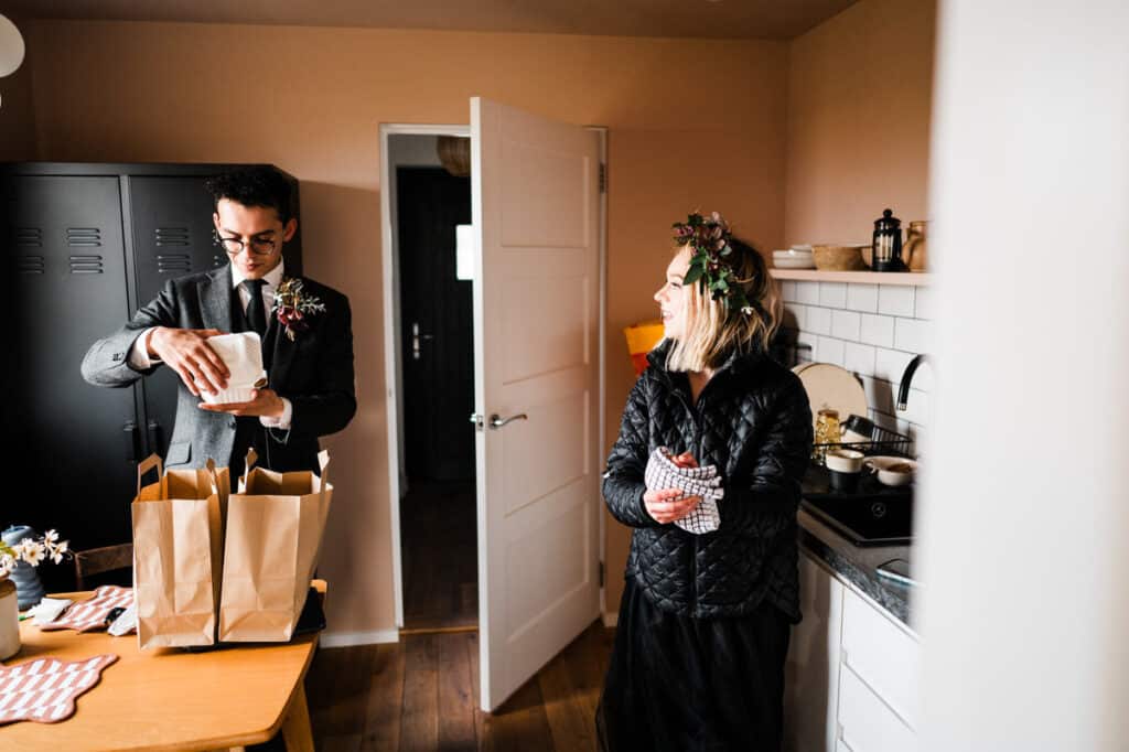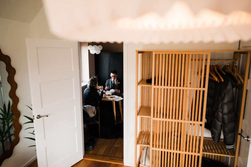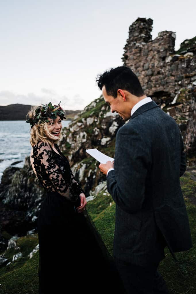 Their first look was intimate and cozy, in their Airbnb nestled below the Quiraing: