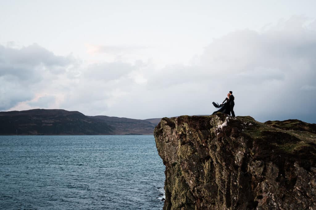 Summer obviously has more of a chance for better weather, but the concept of eloping on Skye in the summer has me already cringing. Why? Because the sheer crowds. It’s a madhouse. Driving can take twice as long due to traffic, people are impatient, and it’s difficult to get any type of privacy. You also have to consider the fact that the best light is at sunrise and sunset (also coincidentally when there are fewer crowds), and in the summer the sun rises very early and sets very late.